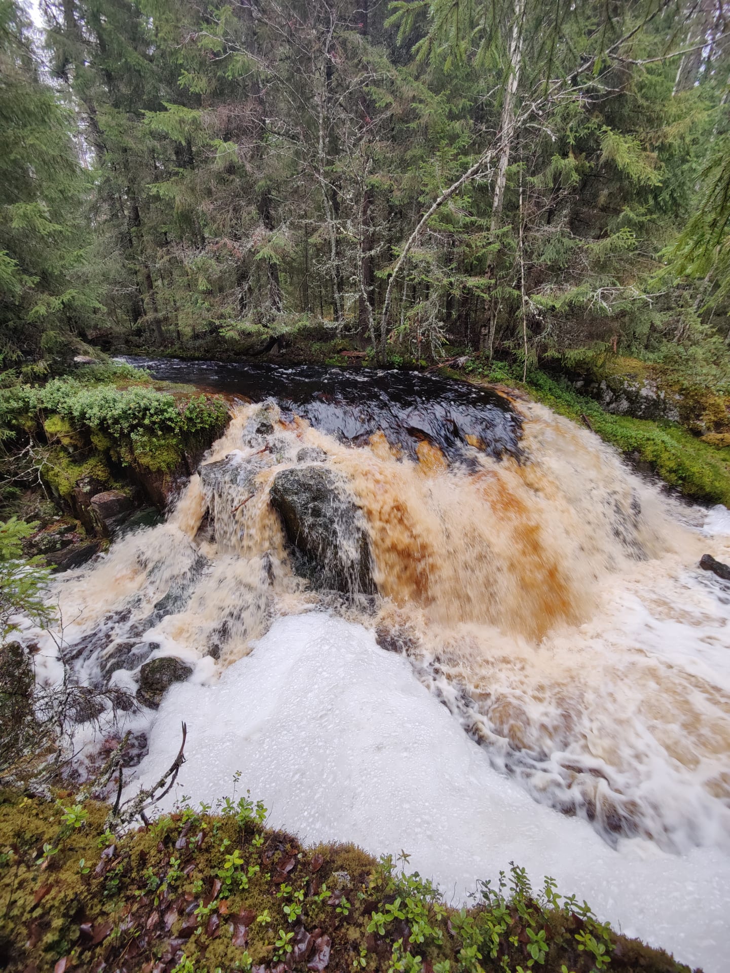 Huomioithan, että putoukselle pääsy vaatii kävelyä noin 350 metriä osin epäselvää metsäpolkua pitkin.