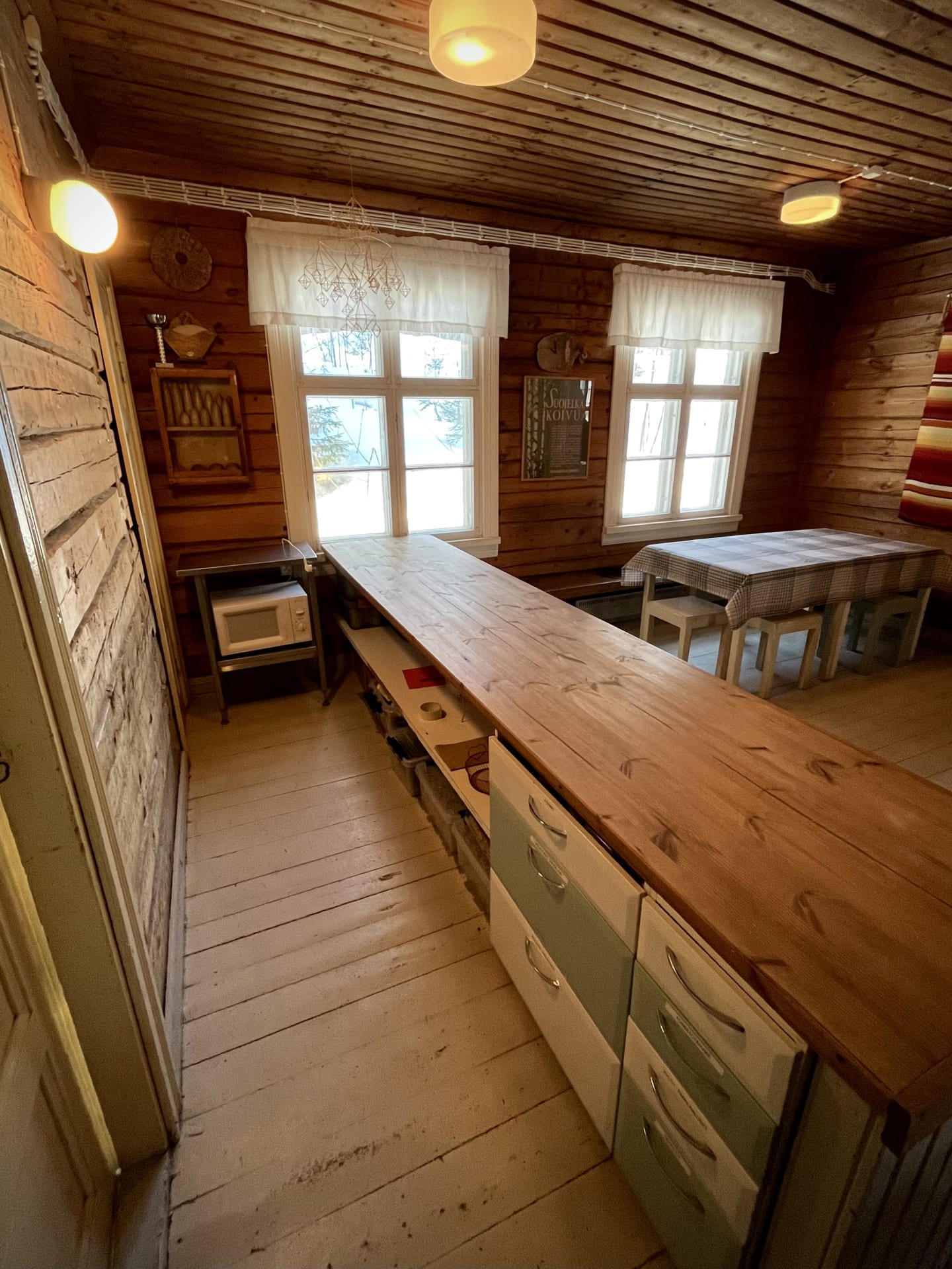 Talo on hirsirakennus, joka tarjoaa viihtyisät puitteet 100 juhlavieraalle. Astiastoon kuuluu laadukas kahvi- ja ruoka-astiasto viinilaseineen sekä kattava valikoima tarjoiluastioita.