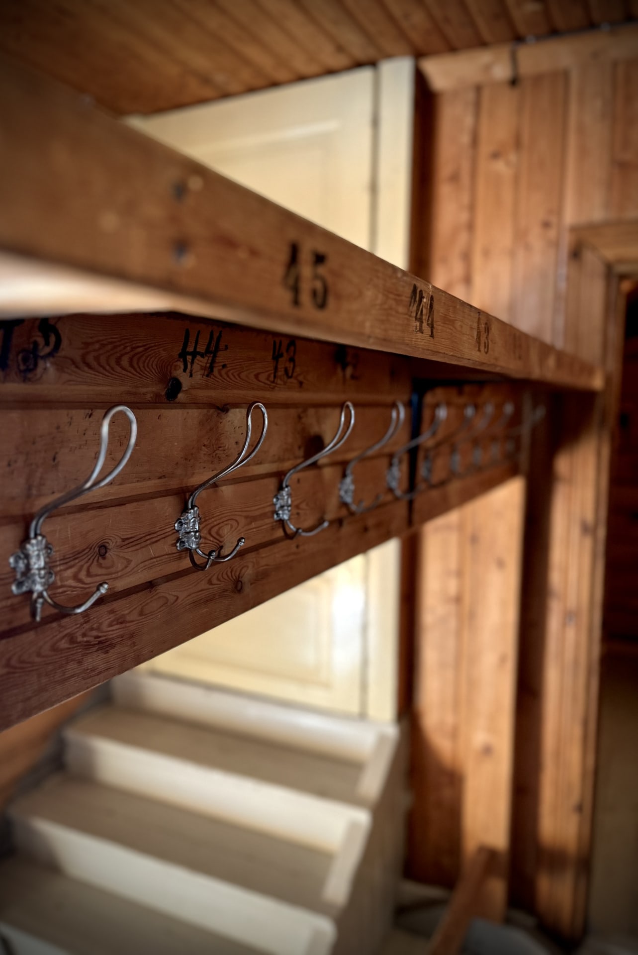 Yläkertaan johtaa portaat ja siellä on parveke, jossa on istumapaikat 30:lle. Parvekkeelta on näkymä saliin. Lisäksi yläkerrassa on kokoushuone, joka on kalustettu noin 10-15 hengen kokoontumisiin. Huone toimii isommissa juhlissa hyvin esim. lastenhuoneena. Varustus on myös yöpyjille. Huoneessa on kaksi 120 cm leveää sänkyä. Vuodevaatteet liinavaatteineen löytyy neljälle.